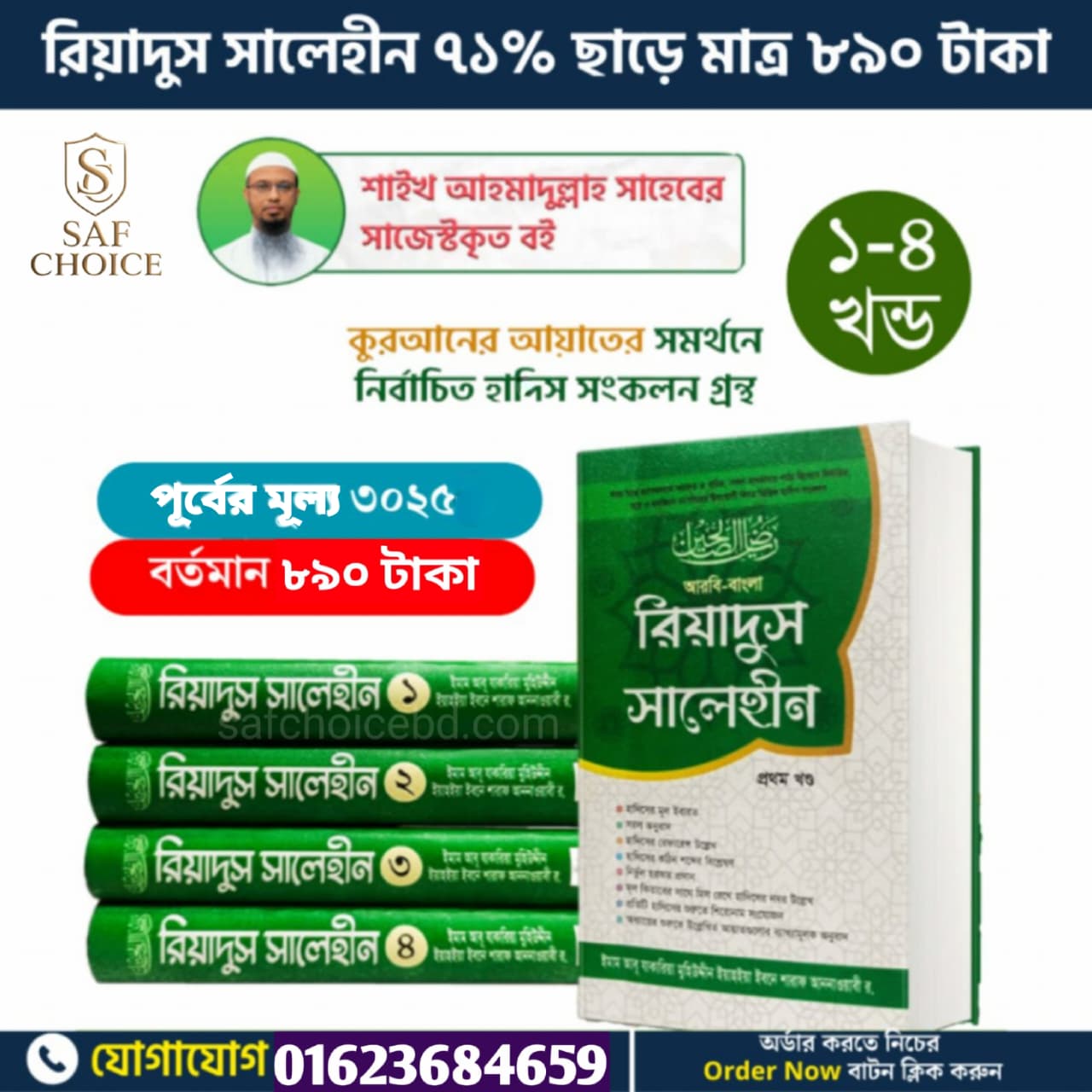রিয়াদুস সালিহিন (আরবি–বাংলা) ১–৪ খণ্ড হলো ইমাম নববী (রহ.) সংকলিত একটি প্রসিদ্ধ ও নির্ভরযোগ্য হাদিস গ্রন্থ। এতে কুরআনের আয়াতের সমর্থনে নির্বাচিত সহিহ হাদিস সংকলিত হয়েছে, যা একজন মুসলিমের দৈনন্দিন আমল, চরিত্র ও আত্মশুদ্ধির জন্য অত্যন্ত গুরুত্বপূর্ণ।